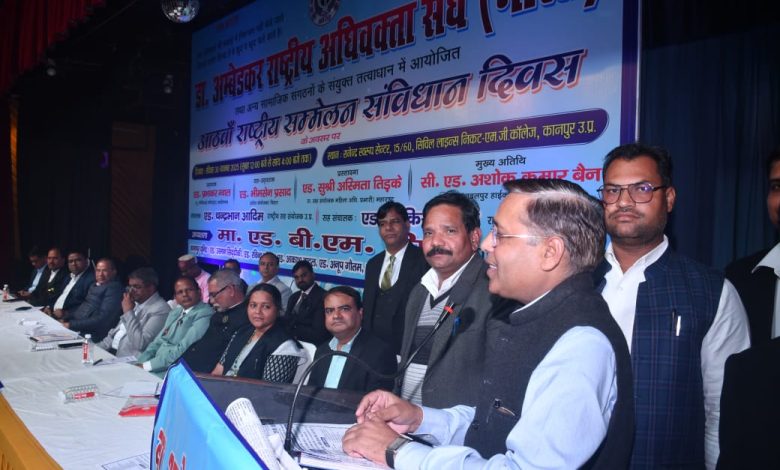 कानपुर : डॉ.अंबेडकर राष्ट्रीय अधिवक्ता संघ आयोजित आठवां राष्ट्रीय सम्मेलन संविधान दिवस के उपलक्ष्य में रविवार, 30 नवंबर 2025 को रागेंद्र स्वरूप सेंटर, सिविल लाइंस, कानपुर, उत्तर प्रदेश में भव्य रूप से आयोजित किया गया और अत्यंत भव्य व ऊर्जामय वातावरण में कार्यक्रम सफलतापूर्वक संपन्न हुआ।